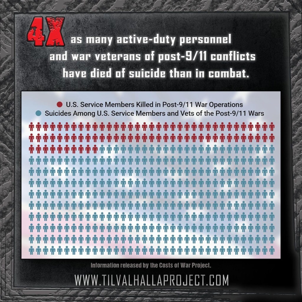 And although the battle has ceased, there is still a war to be fought. Many of our soldiers return home with traumatic brain injuries, PTSD, and other mental health needs. More than 20 soldiers commit suicide a day; these staggering numbers outweigh combat deaths by 4x.